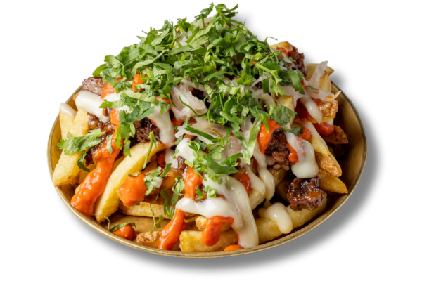 Double-cooked fries with grilled chicken shish, homemade garlic mayo, chilli sauce, chimichurri sauce and coriander. Swap to slow-cooked ox cheek +5.6